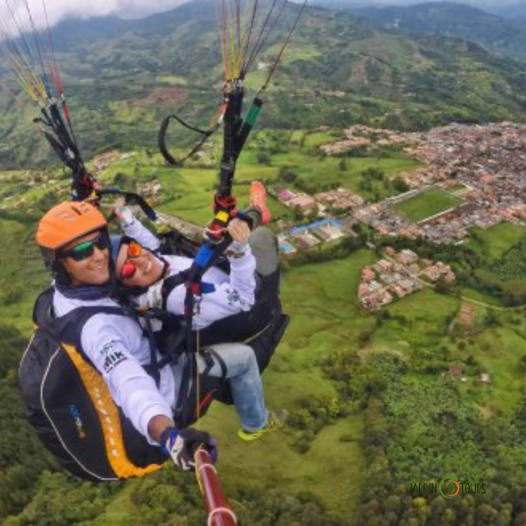 Experience the magic of flying over the Jardín Valley in Antioquia, with its lush landscapes, green mountains, and harmonious architecture. Feel the adrenaline rush of this airborne adventure.